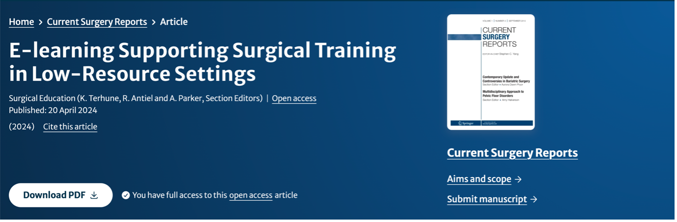 New Publication on E-learning as Part of Surgical Training in Low-Resource Settings
